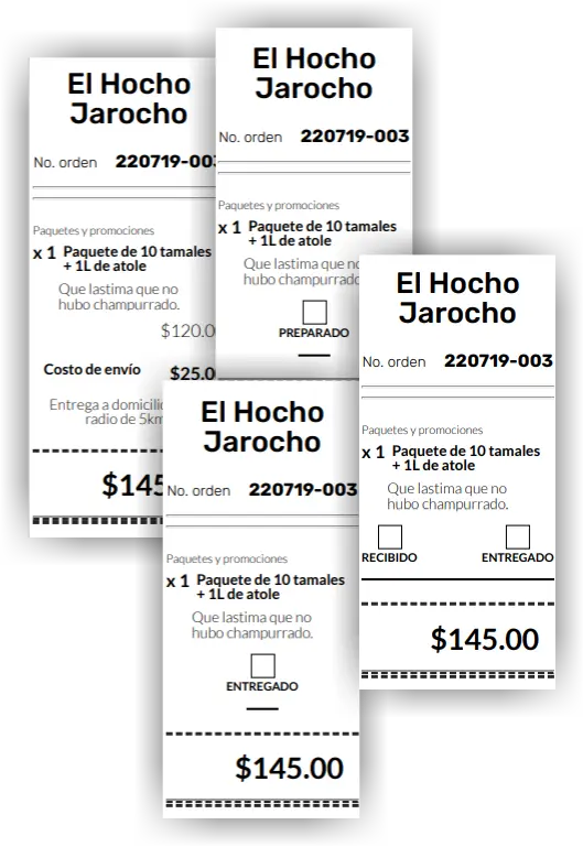 De vez en cuando olvidábamos darle algún platillo al repartidor o a él se le pasaba entregarlo… …ahora imprimimos un ticket para que el repartidor marque lo que recibe y lo que entrega. No más pedidos incompletos
